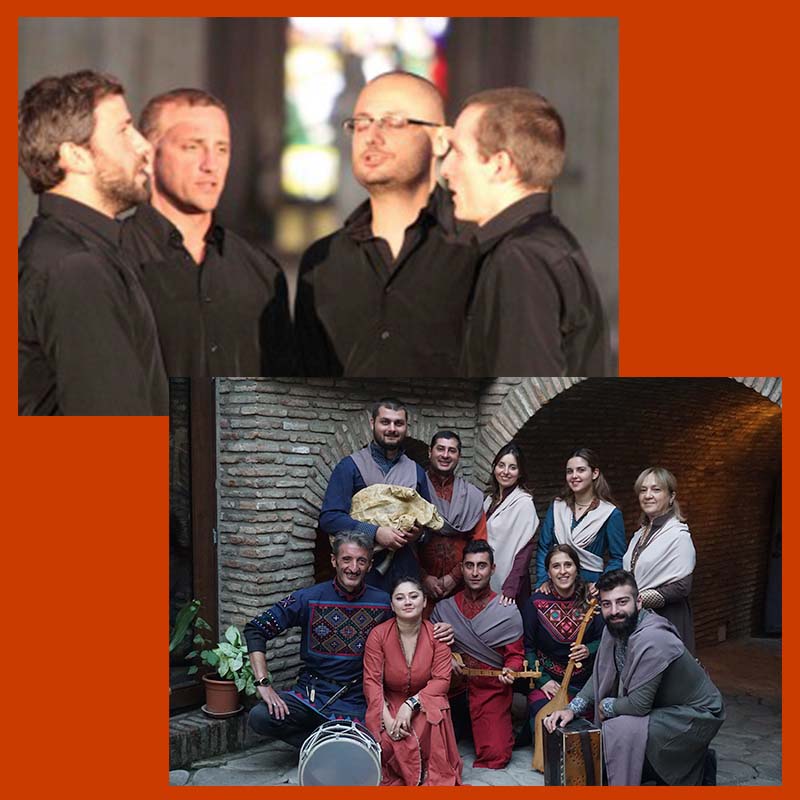 Zedashe Ensemble (ანსამბლი ზედაშე) is a polyphonic vocal choir and dance group based in the eastern medieval fortress city of Sighnaghi, Caucasus Georgia. It is one of the few mixed (male and female) choirs in Georgia that is led by women. Directed by Ketevan Mindorashvili, the ensemble was founded in the mid-1990’s to sing polyphonic chants, unique to Georgia, that were largely lost during the Communist era. The complex three-part melodies date back to pre-Christian times and comprise music sung for the Orthodox liturgical services. Zedashe’s repertoire also includes folk songs, instrumental melodies and accompanying dances, which were collected from old publications and learned from village song-masters from around the many diverse regions of the country.